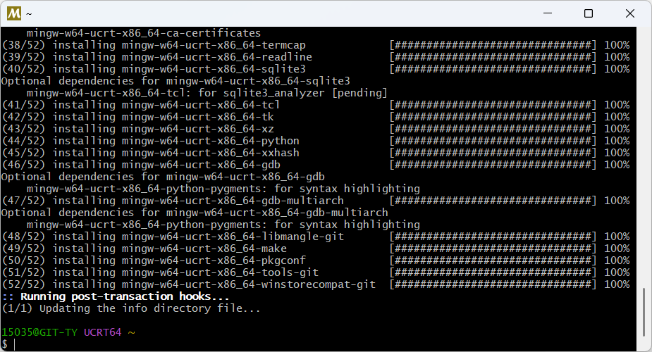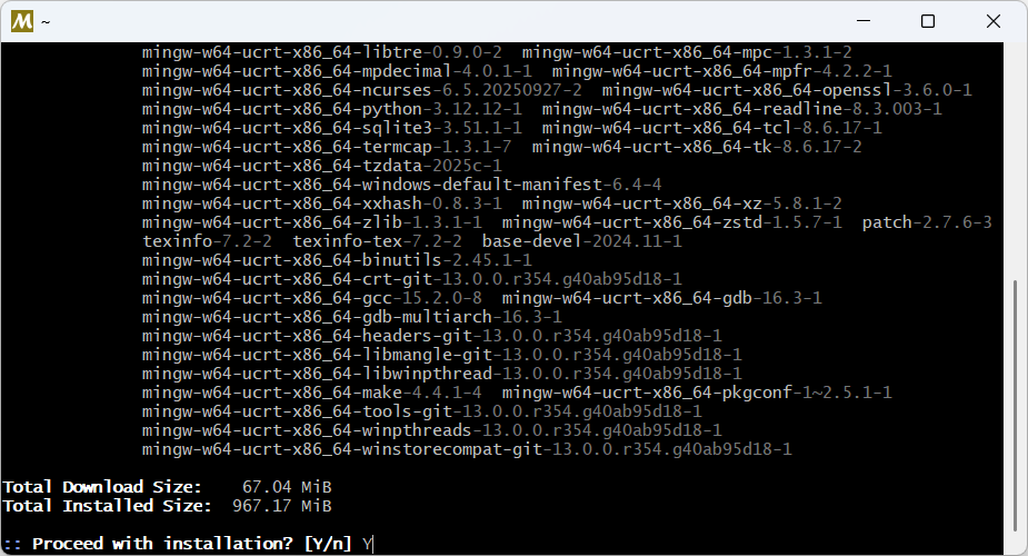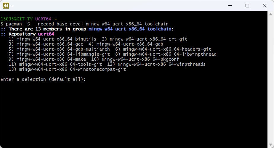 pacman -S --needed base-devel mingw-w64-ucrt-x86_64-toolchain