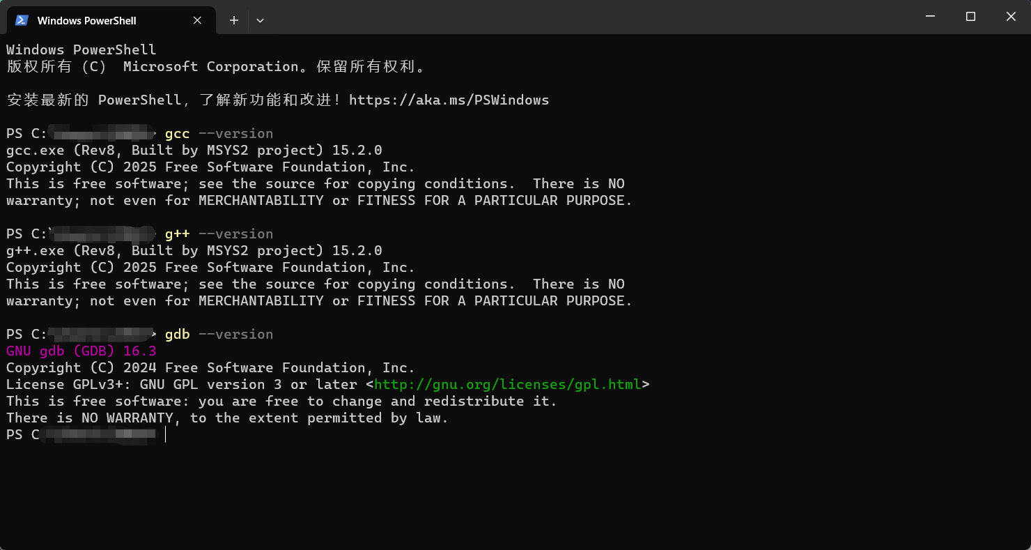保存后,打开Windows终端,执行下图中的命令,如果得到类似图里的返回结果则表示编译器及环境搞定了。